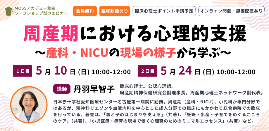 | 講師 | 丹羽 早智子 氏(周産期精神保健研究会副理事長、臨床心理士、公認心理師) |
