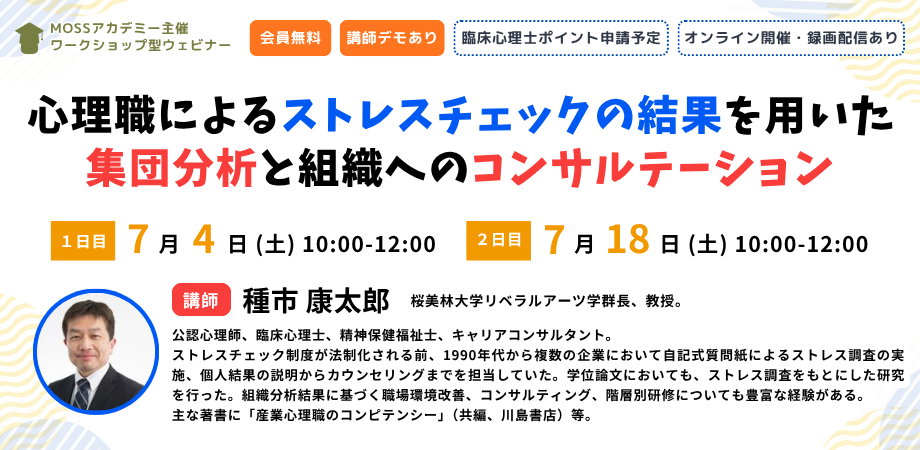 | 講師 | 種市 康太郎 氏(桜美林大学 リベラルアーツ学群長、教授。公認心理師、臨床心理士、精神保健福祉士、キャリアコンサルタント) |