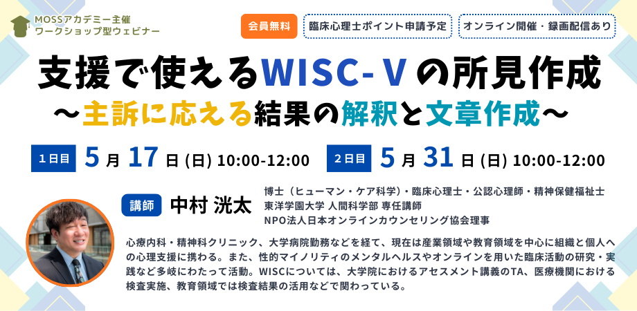 | 講師 | 中村 洸太 氏(博士(ヒューマン・ケア科学)、臨床心理士/公認心理師/精神保健福祉士、東洋学園大学 人間科学部 専任講師、NPO法人日本オンラインカウンセリング協会理事) |