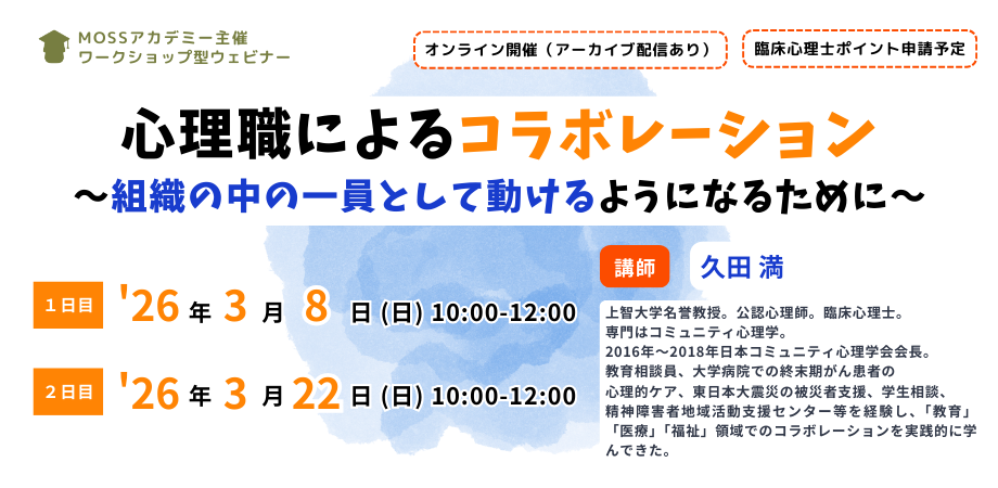| 資格ポイント | 臨床心理士更新ポイント2条(4)項目(2ポイント)申請予定 |