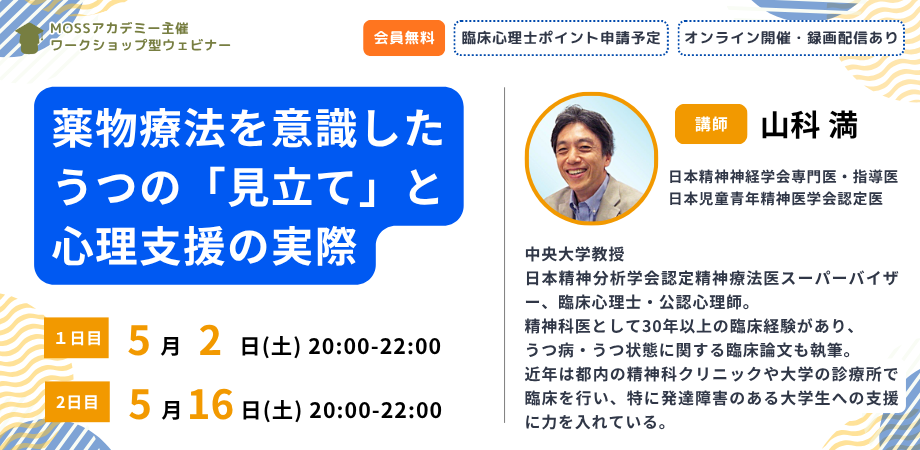 | 講師 | 山科 満 氏(中央大学文学部教授、日本精神神経学会専門医・指導医、日本児童青年精神医学会認定医、日本精神分析学会認定精神療法医スーパーバイザー、臨床心理士・公認心理師。) |